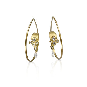 In 18k yellow gold , 0.40 ct tw round diamonds, G,VS, 0.78 ct tw briolettes, G, VS quality.