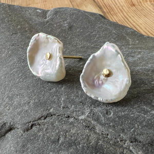 Helping you step away from classic pearls, add these stunning shell-like pearl studs in 18K yellow gold to your earring wardrobe.
