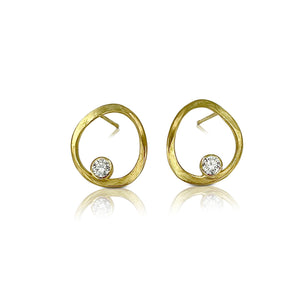 Forged 18kt yellow gold, 18 x 16.25mm. Lab created diamonds 0.50 ct tw, G, VS quality.