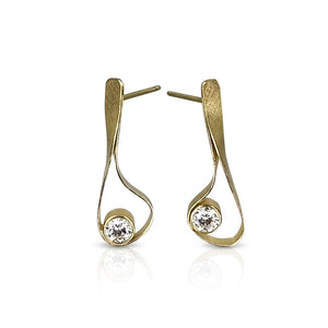 A graceful twist in the ribbon-like gold strip makes the diamonds face forward so you can fully appreciate their beauty. There is a right and a left earring.