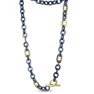 Oxidized sterling silver and 18K yellow gold, 16". Other lengths available. Please inquire.