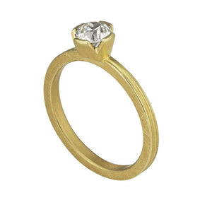 18K yellow gold, shank width (2mm at base x 1.7mm at top), with mine-cut antique diamond, 0.49 ct, G SI2, GIA certified.