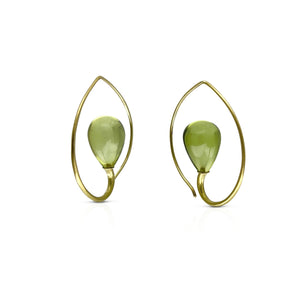 Fabulous Green Amber drops are suspended in these hoops like a lantern. Amber is light as a feather and so are these earrings.
