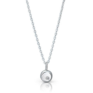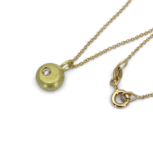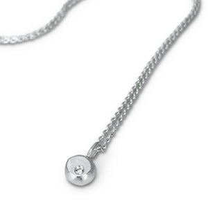 Sterling silver (white finish) or 18K yellow gold, nugget diameter 7mm. Sterling silver version has a 0.025 ct diamond. Gold version has a 0.04 ct diamond. Both diamonds are G,VS quality, cable chain available in 2 length.