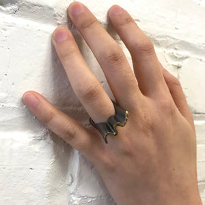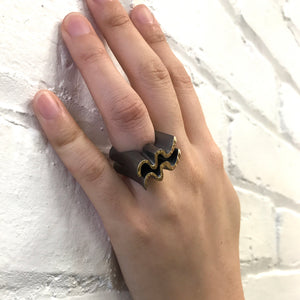 Tall Wave Ring in Blackened Sterling Silver with 14K gold overlay. Available in size 6.5 to 7 only.