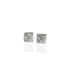 Square earrings with 6 diamonds, 0.055 ct tw, 6.5-7.0mm x 6.5-7.0mm, square shape, with hammer texture.